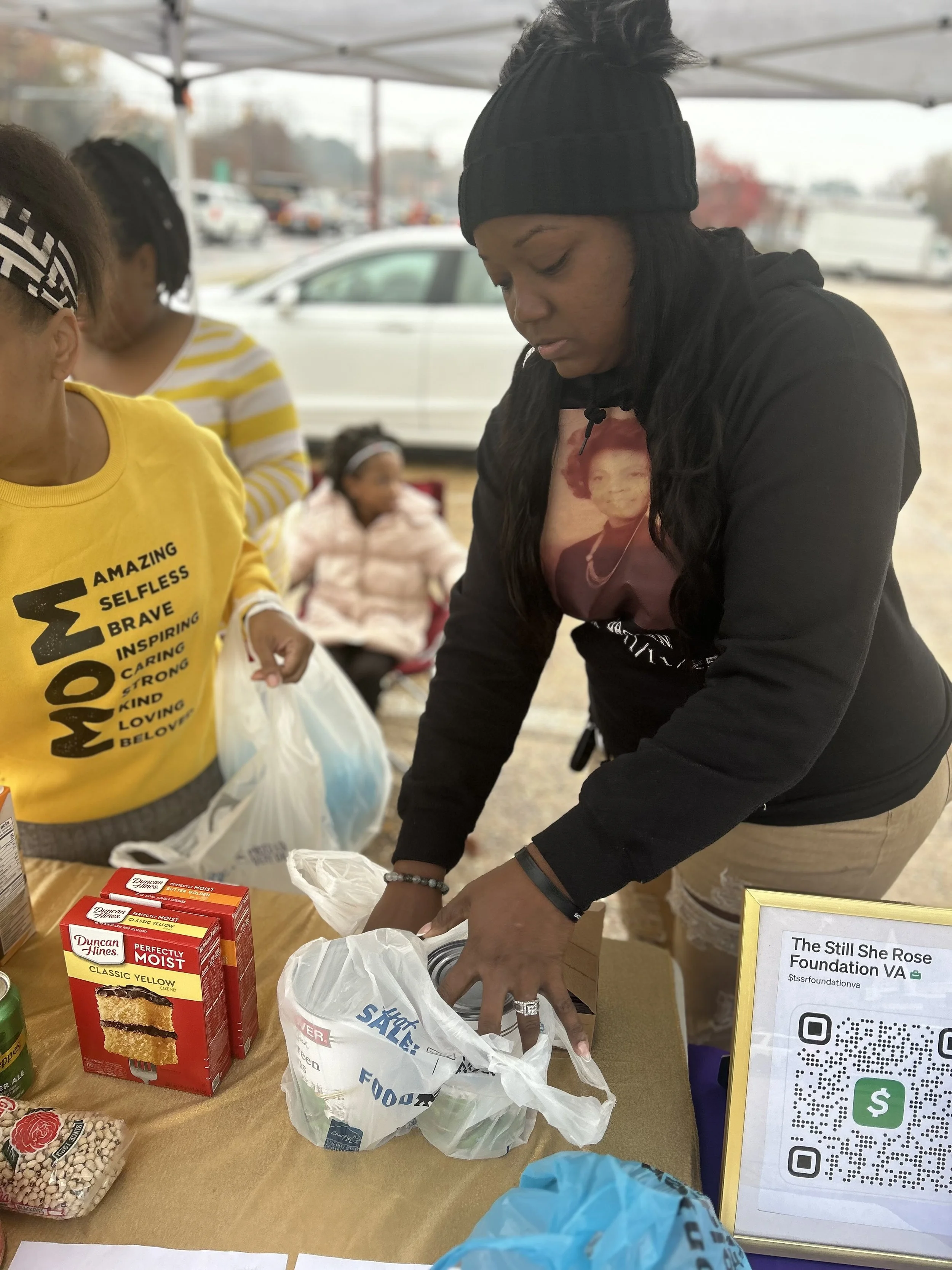 This holiday season, we will select a special family to support through our Adopt-a Family Christmas Dinner program. Our goal is to ensure they experience a warm, joyful, and stress-free Christmas meal while making their Christmas joyful and memorable. The selected family will be presented with gifts and a complimentary dinner where they have the opportunity to dine with the executives of The Still She Rose Foundation VA.